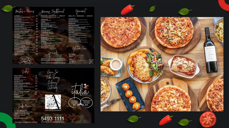 Welcome to Italia Pizza & Pasta, located at Shop 2/740 Nicklin Way, Currimundi. This hidden gem offers a remarkable selection of gourmet and traditional pizzas that cater to a variety of tastes. Highlights include the Calabrese Pizza with eggplant, salami, and olives, and the indulgent Mamma Mia Pizza, featuring smoked salmon and cream cheese.